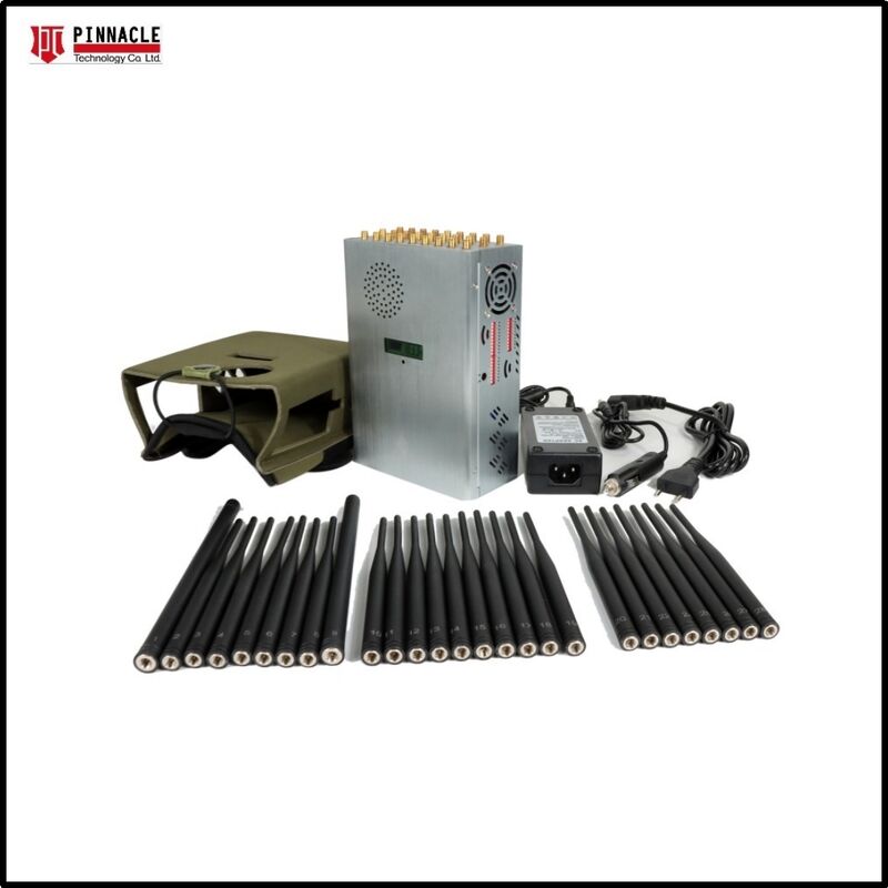 Gelişmiş 28 bantlı kablosuz sinyal engelleyici, 28 antenli hepsi bir arada tasarıma ve taşınabilirlik için naylon kılıfa sahiptir. Android telefonlar, tabletler, akıllı telefonlar, iPhone'lar, Windows telefonlar ve diğer cihazların tüm türlerini GSM, 3G, 4G, 5G, CDMA 450MHz, GPS, Glonass, Beidou, Wi-Fi 2.4G, Wi-Fi 5G, Wi-Fi 6E, Telsiz UHF/VHF ve 315, 433, 868, 915, LORA ve LOJACK dahil RF sinyallerini engelleyerek etkili bir şekilde engeller. Ayrıca 88-108MHz FM radyo bozucu olarak da işlev görür. Kapasite yüzdesini, çalışma voltajını ve akımını gösteren pil kapasitesi LCD ekranına sahiptir.